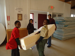 On Saturday 10th December, the Boy Scout Troop 300 from St George’s Episcopal Church in Hempstead served at Camp DeWolfe. Steve Lindo and the troop gave their Saturday to do a couple of essential projects in the crisp yet sunny winter weather. The troop distributed over 50 new tempur-pedic mattresses to all the heated cabins and returned old mattresses to the dining hall for donation. Then the troop did some brush clearing in front of St Luke’s Chapel. This work now means the chapel can be seen from view upon entrance. The eagle scouts led the other scouts and the group served self-sufficiently and with dedication and enthusiasm. This troop is proud to run itself and the other scouts train and lead the younger scouts. What a team of young men of God! It was a gift to be part of this day. Camp DeWolfe looks forward to hosting this troop again in the new year, as they have monthly servicer projects and monthly camping trips as part of their program. We are thankful to now be back on their list of locations/sites for their program as they spend time in community, the outdoors and as they develop as leaders in Christ. Are you involved in Boy Scouts or Eagle Scouts? Contact the Camp Office today if you are interested in using Camp DeWolfe as a camp site or service project site!