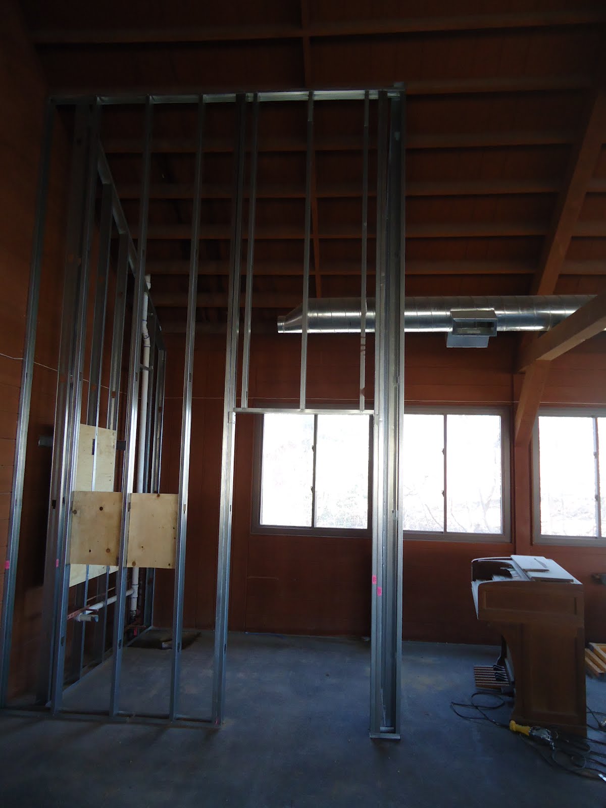 This week, the old and broken fencing and walls around the Swimming Pool were removed ready for a new masonry wall and new fencing that meets the Health Department’s Code. Also, the framework is going up for new bathrooms in the Meeting Hall, St Luke’s Chapel and the Canon Davis Dining Hall addition. New heating systems are installed in these three buildings too. We are each reminded of personally having firm foundations in Christ as these essentials of heat, plumbing and electrics are improved.Swimming Pool rotten wood removed…Canon Davis Dining Hall bathroom addition…