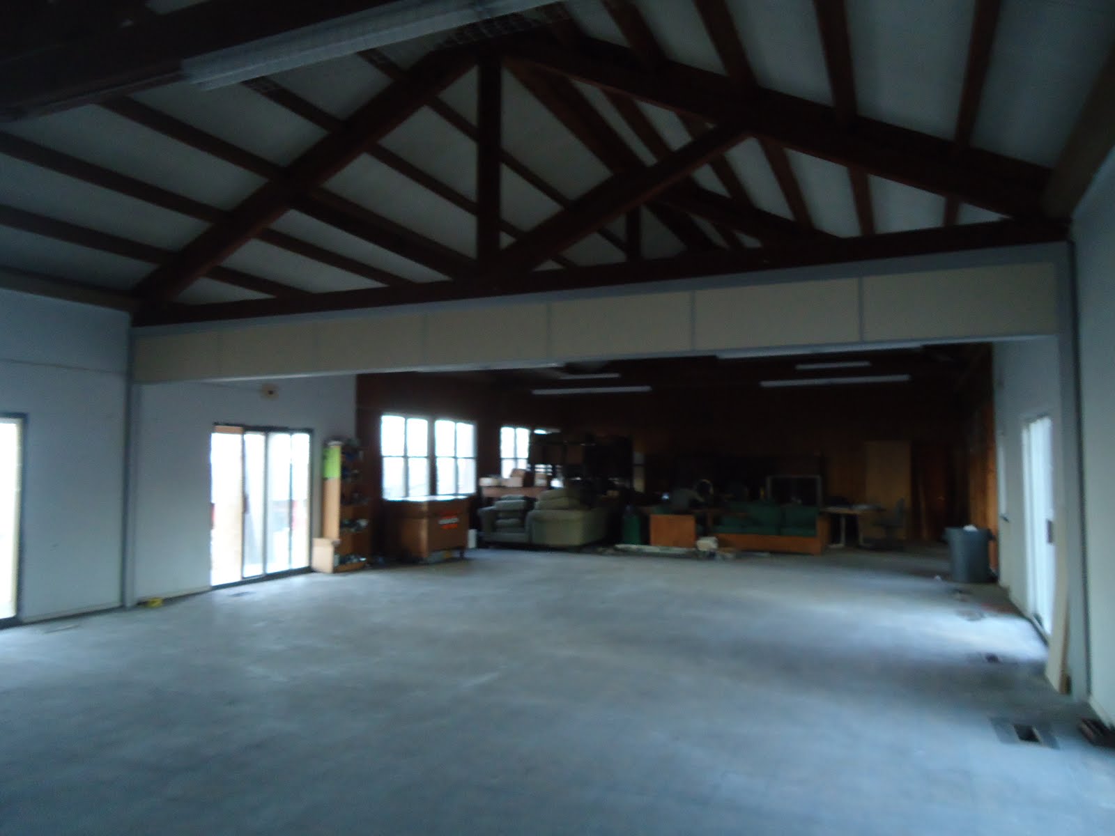 Inside the Meeting Hall…. installing the new divider so two groups of up to 75 can meet at the same time…