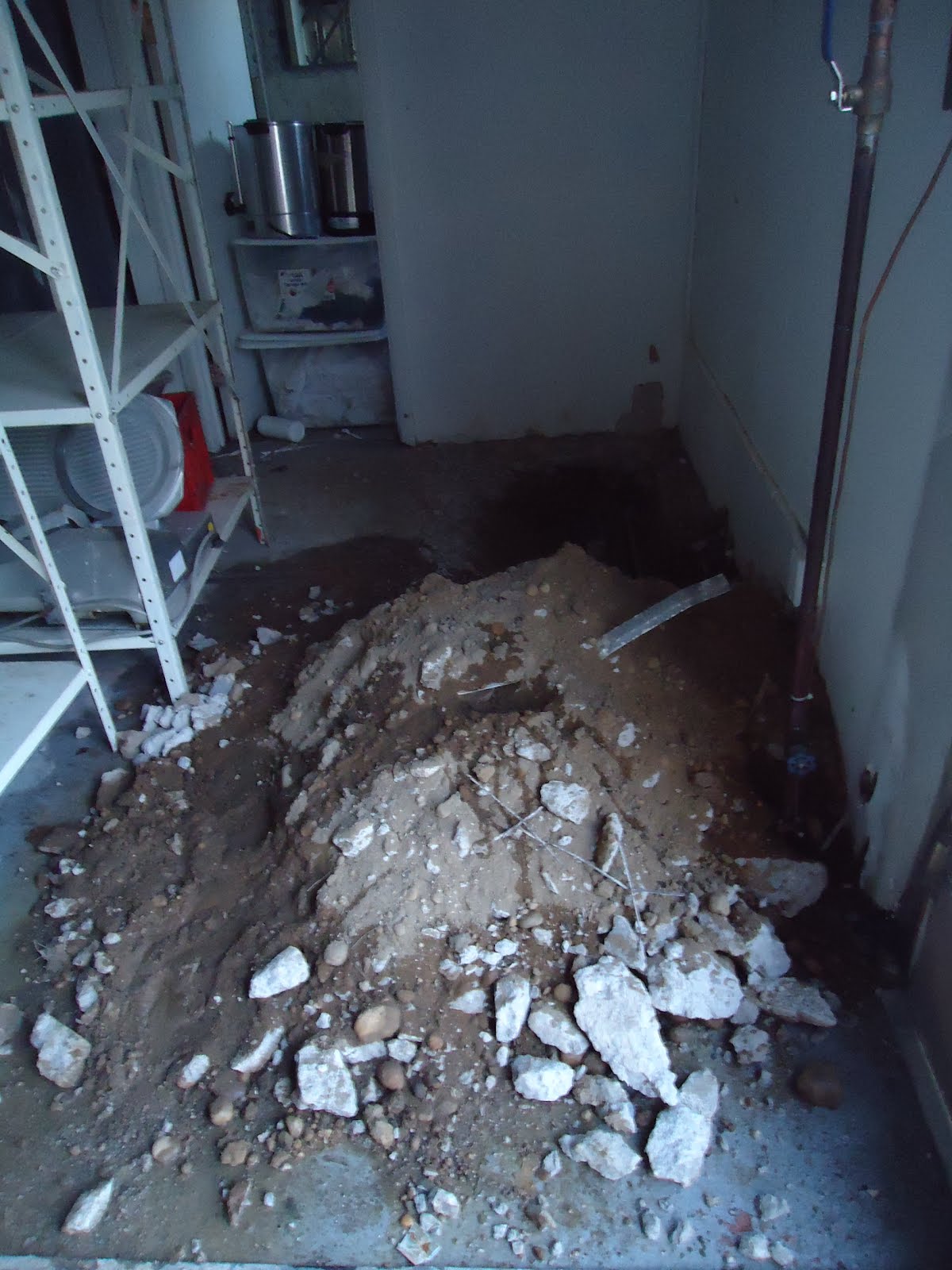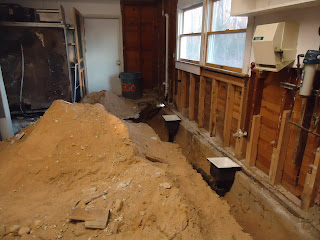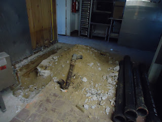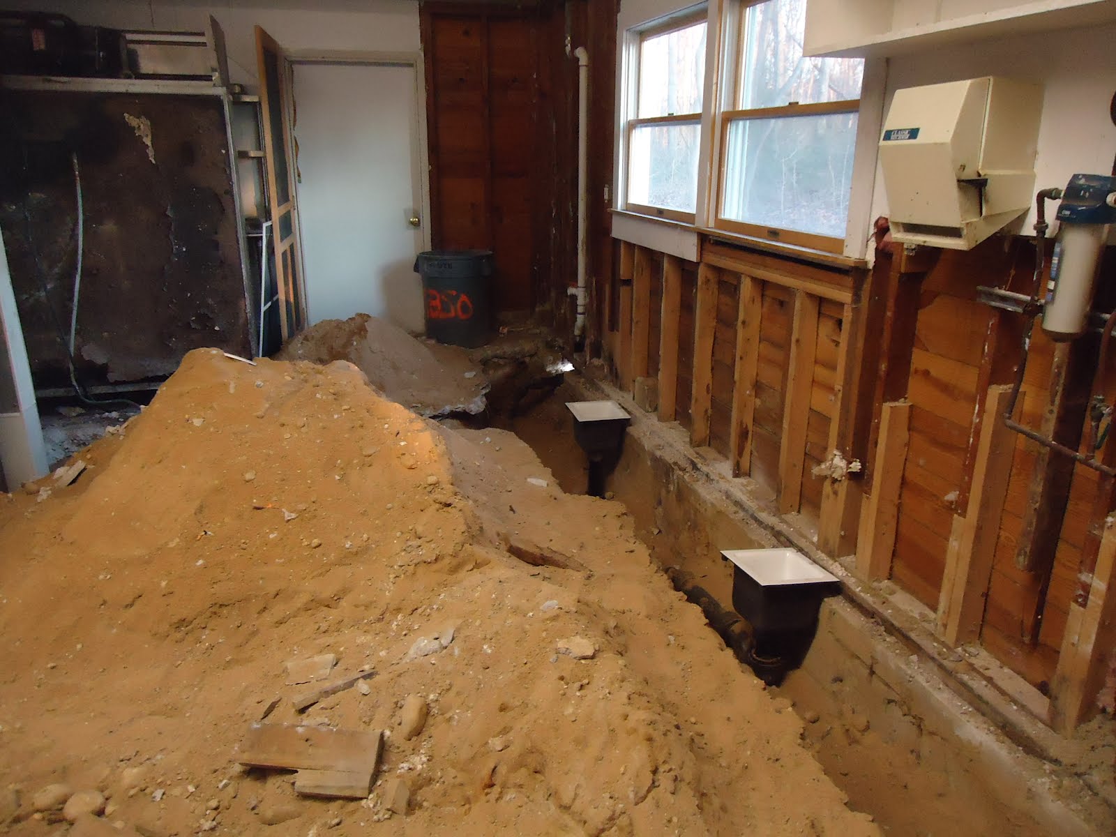 The Kitchen floor…. old redundant plumbing removed for upgrades and to meet code… This will be the dishwasher area…